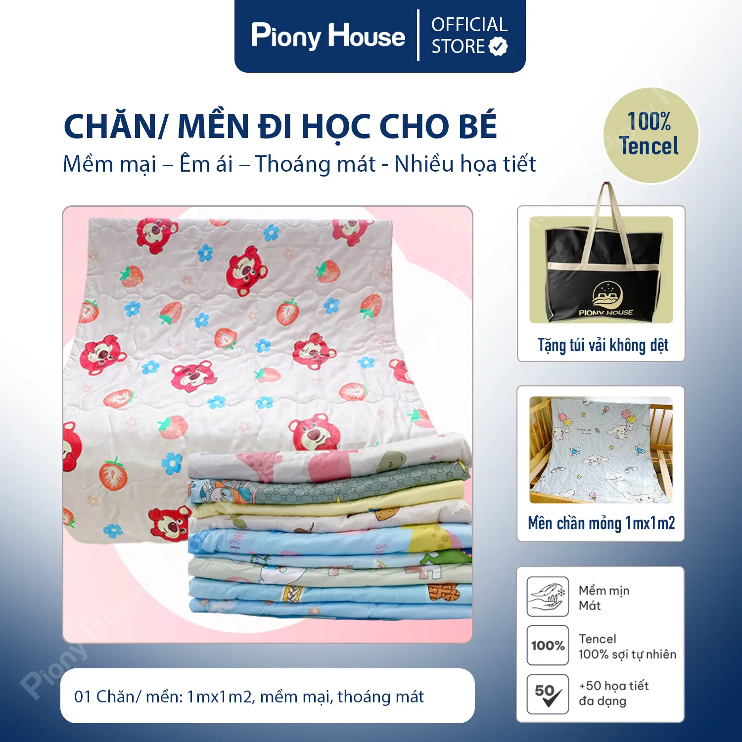 Chăn mền cho bé đi học, chất vải Tencel mềm mại, thoáng mát nhiều họa tiết