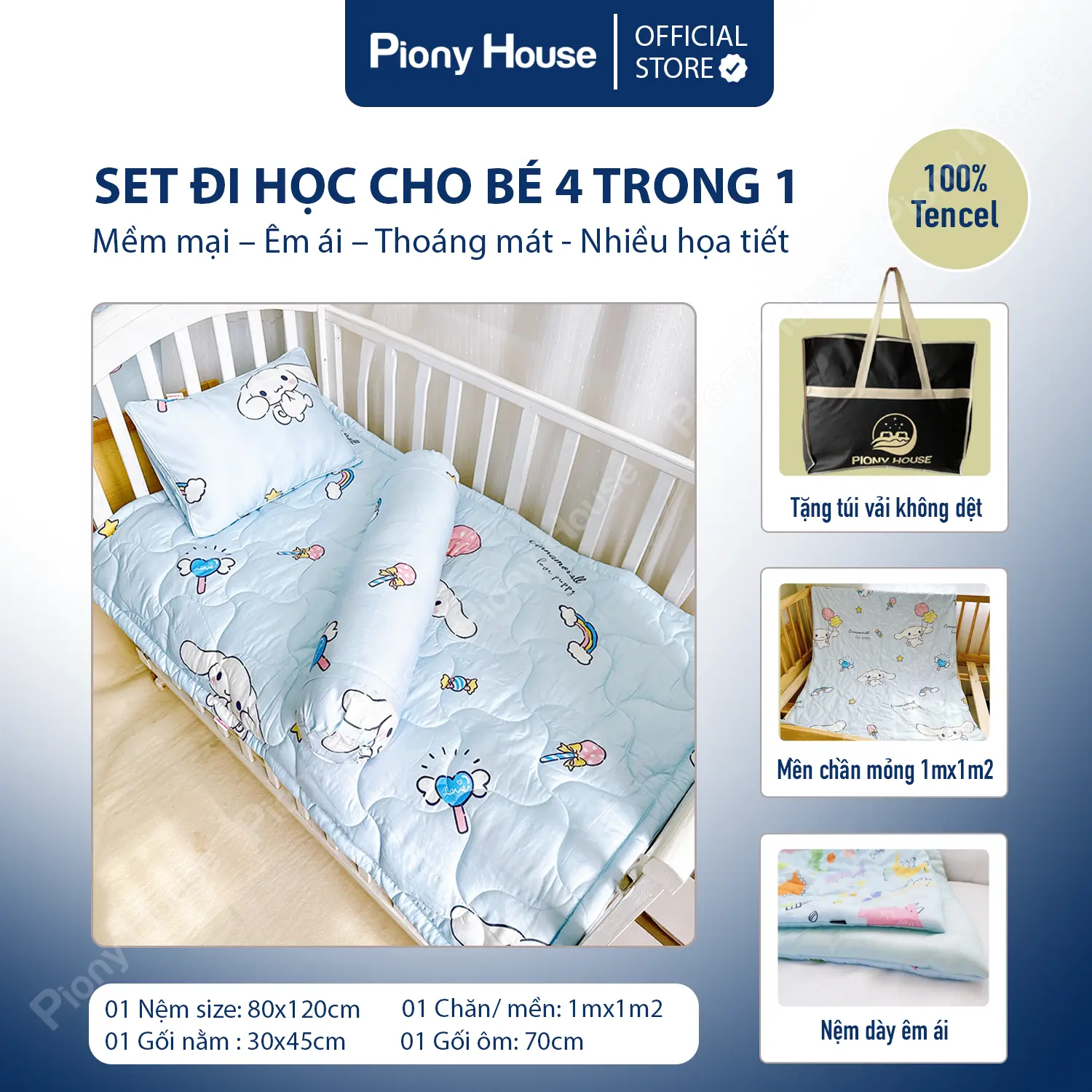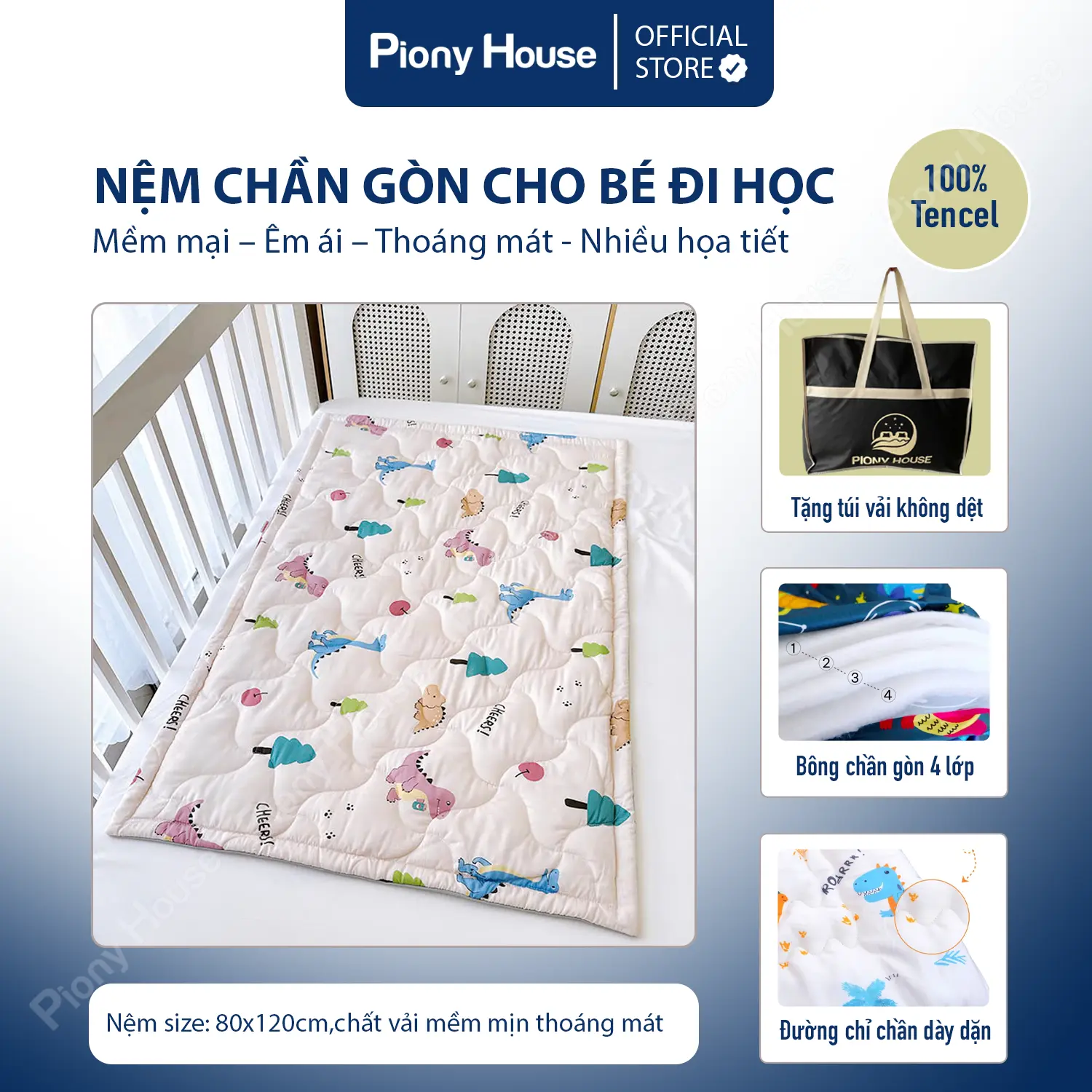 Nệm cho bé đi học mầm non tiểu học, vải Tencel mềm mịn, chống thấm nhiều họa tiết